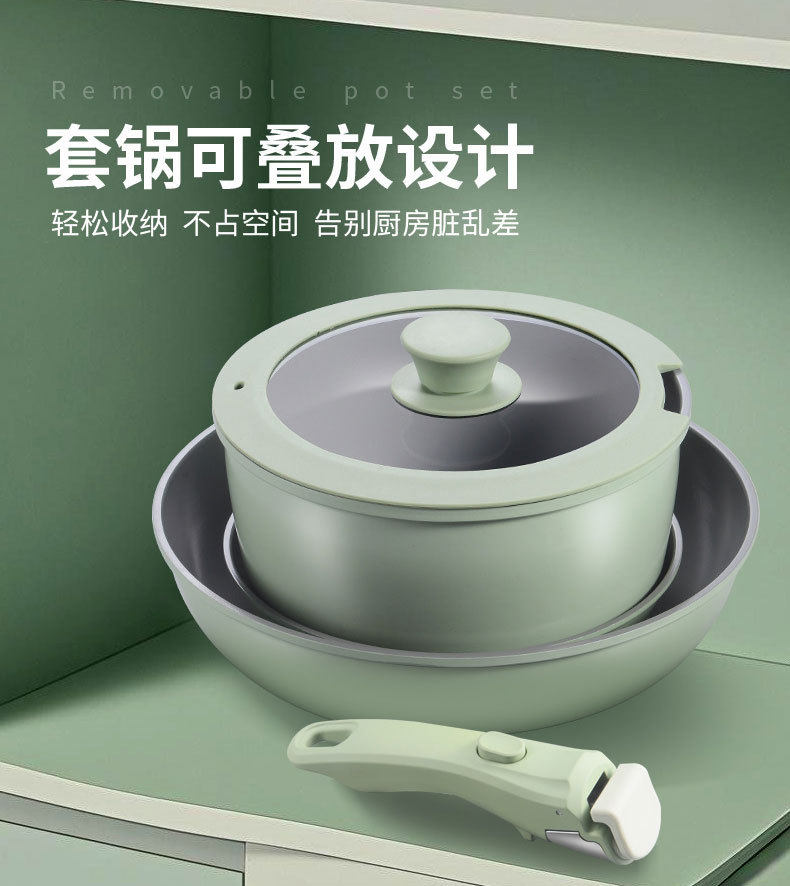 5-teiliges, abnehmbares Keramik-Kochgeschirr-Set mit Antihaftbeschichtung